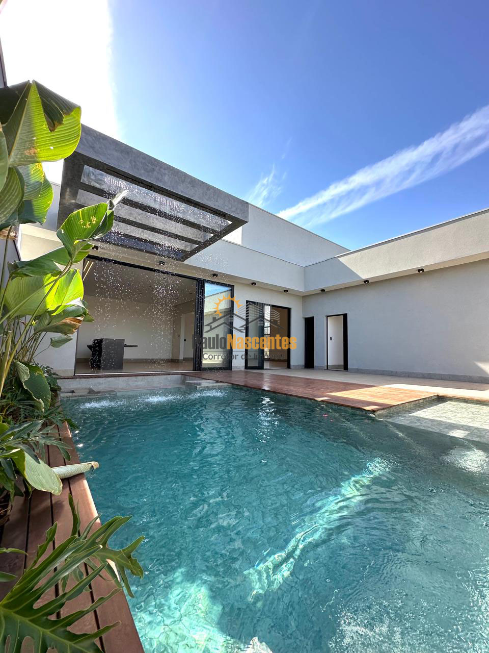 Vende-se casa no Bairro Chácaras Caiçaras, com área de 303m2, lote de 509m2, com 4 suítes sendo 1 delas com closet, sala de TV e sala de jantar com pé direito duplo, cozinha gourmet, área de serviço, 2 lavabos, escritório, despensa, piscina aquecida com hidro e cascata. 4 vagas de garagem. Piso porcelanato, janelas automatizadas, aquecedor solar, bancadas em granito, gesso rebaixado com luz de led.