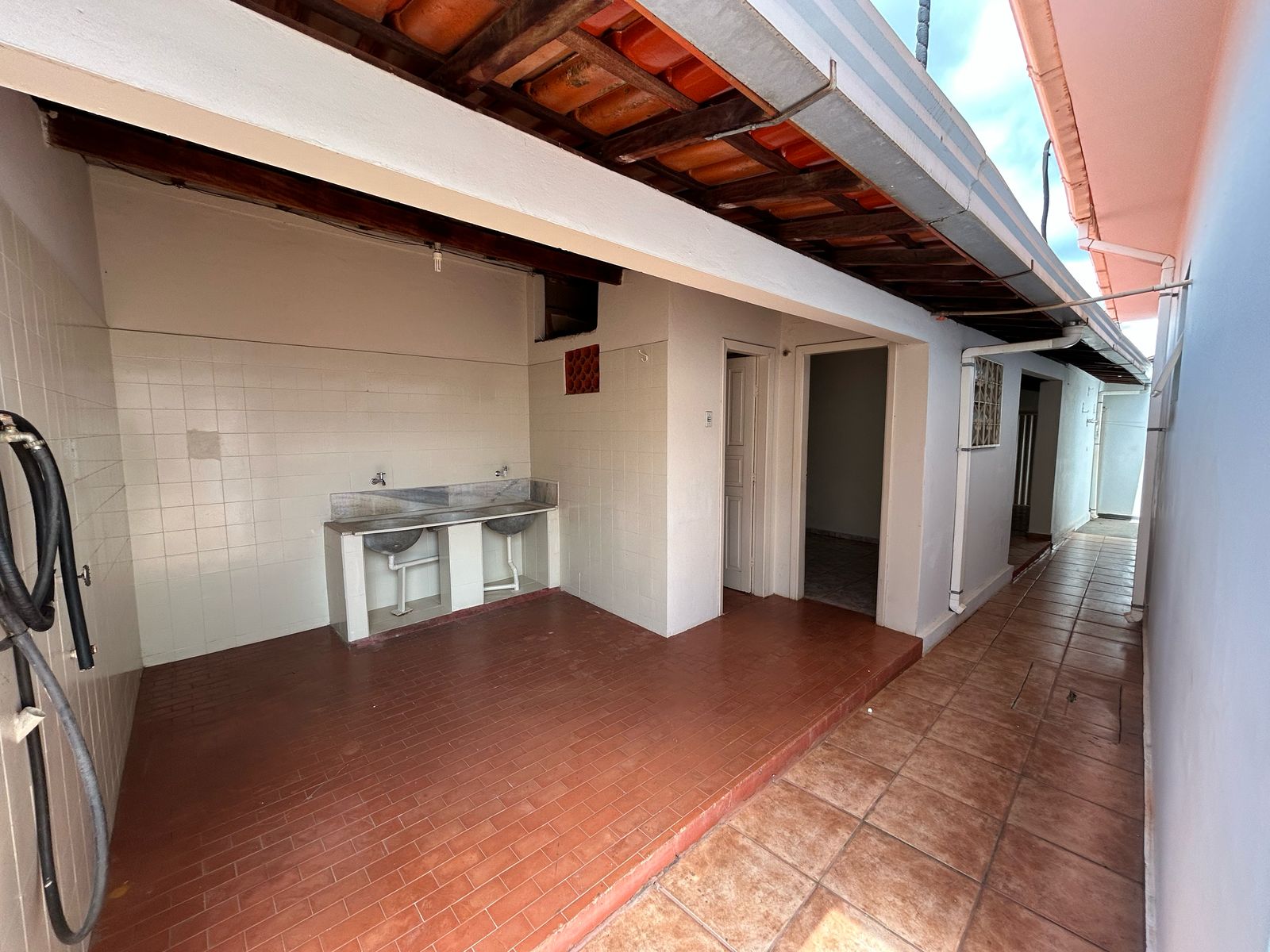 Na parte externa, uma ampla área totalmente revestida em cerâmica, lavanderia grande, 1 quarto anexo à lavanderia que era usado como quarto de passar roupa e costura, e 1 dependência completa de empregada, além de mais uma garagem coberta para 1 carro e um extenso corredor com varal e um poço que poderá abastecer toda a demanda da casa.