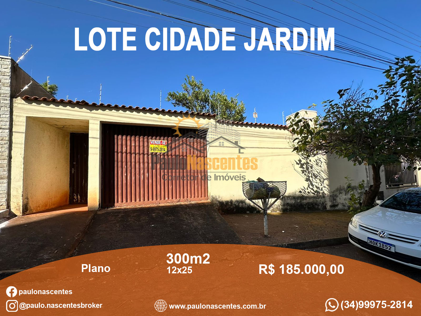 Vende-se lote no Bairro Cidade Jardim, com 300m2 (12x25), plano.
