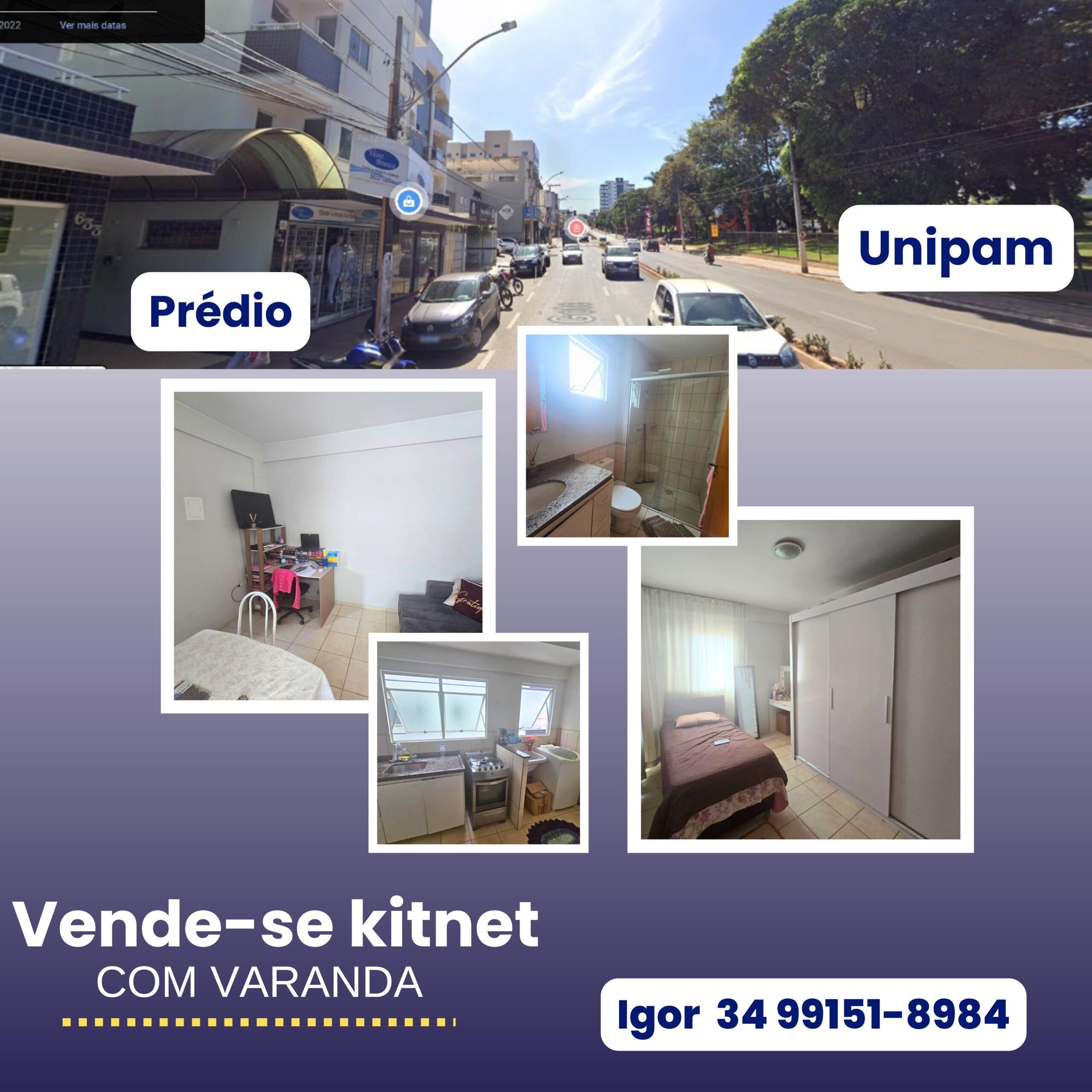 Vende-se kitnet com varanda em frente a UNIPAM
